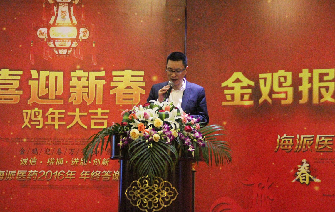 公司總經(jīng)理張翔先生代表全體員工上臺(tái)致辭,對在座嘉賓表示熱烈歡迎,對一直以來關(guān)心、支持海派發(fā)展的客戶表示最誠摯的謝意。同時(shí),張總回顧了海派的發(fā)展歷程及2016公司取得的可喜成績及獲得的各項(xiàng)榮譽(yù),特別介紹了海派未來五年的發(fā)展目標(biāo)——“立足終端,開拓全國,力爭2020年前年銷售額突破30億元”,現(xiàn)場響起雷鳴般掌聲,嘉賓們對海派的發(fā)展給予了點(diǎn)贊。