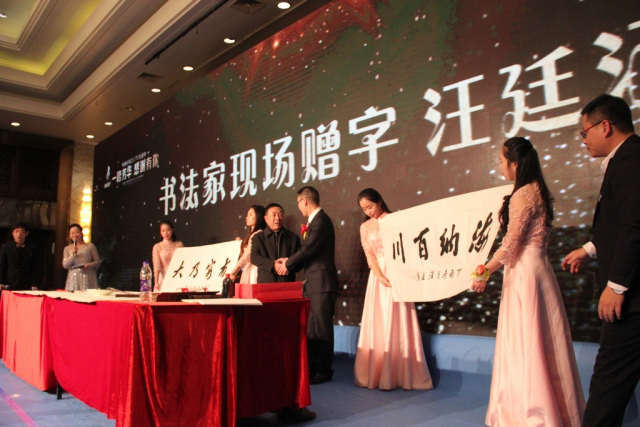 書法家汪廷漢先生現(xiàn)場贈字“海納百川”、“有容乃大