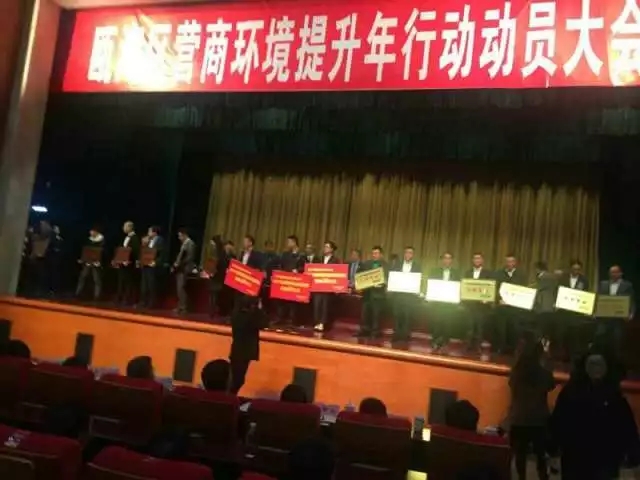 甌海區(qū)區(qū)委書(shū)記婁紹光與區(qū)長(zhǎng)王振勇圍繞甌海區(qū)去年一年建設(shè)之中的諸多成就和工作亮點(diǎn)發(fā)表重要講話,指出了營(yíng)商環(huán)境中的存在的不足之處,提出一些行之有效的改善甌海區(qū)營(yíng)商環(huán)境的措施。隨后,婁紹光書(shū)記對(duì)于在2017年度為甌海區(qū)經(jīng)濟(jì)建設(shè)作出卓越貢獻(xiàn)的企業(yè)和企業(yè)家進(jìn)行授牌、表彰。
