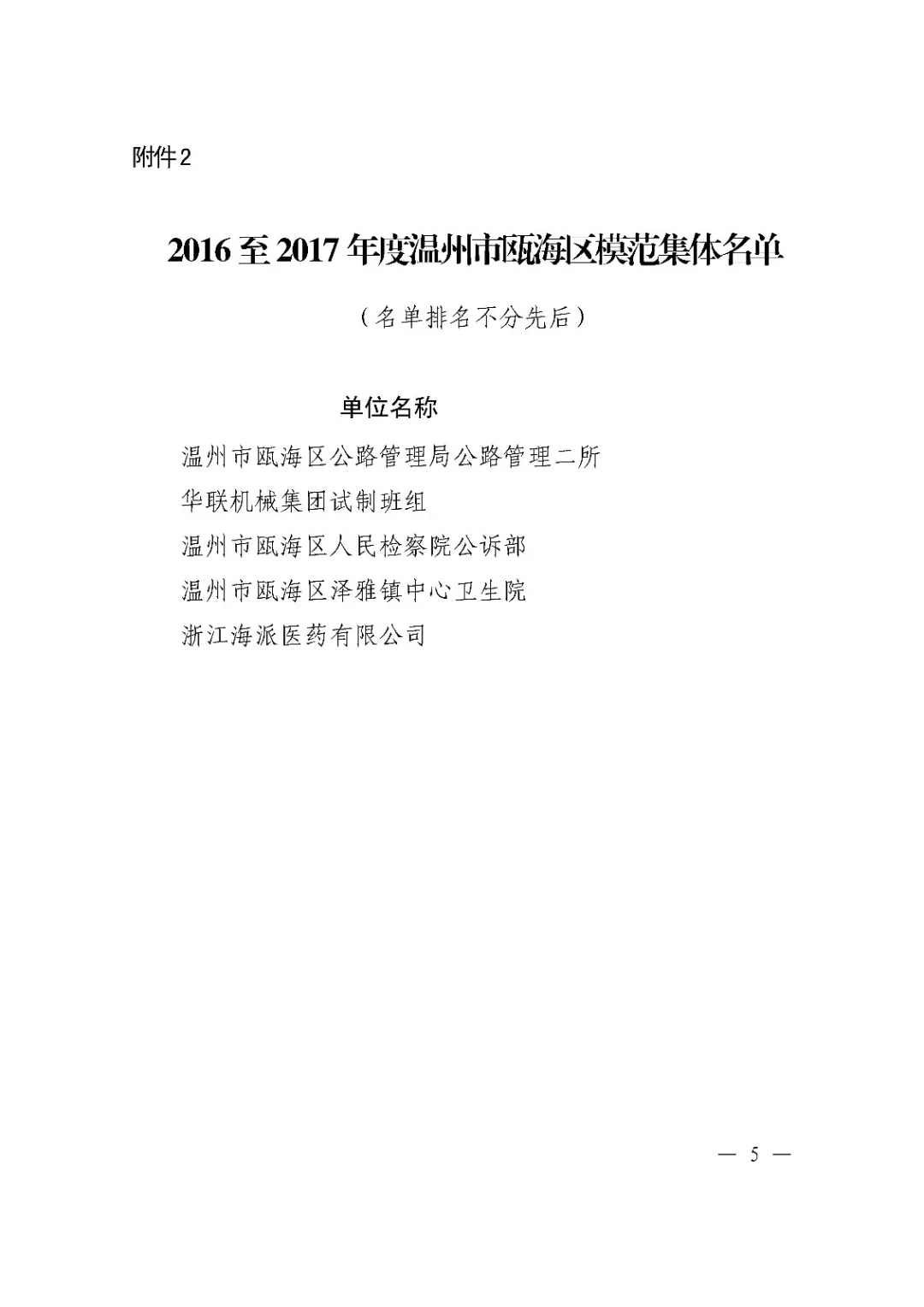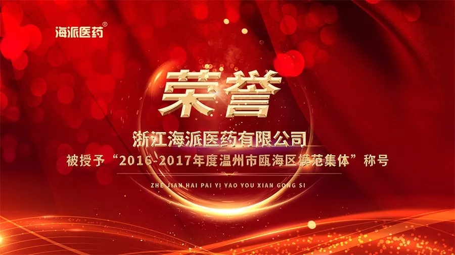 海派醫(yī)藥被授予“2016-2017年度溫州市甌海區(qū)模范集體”稱號