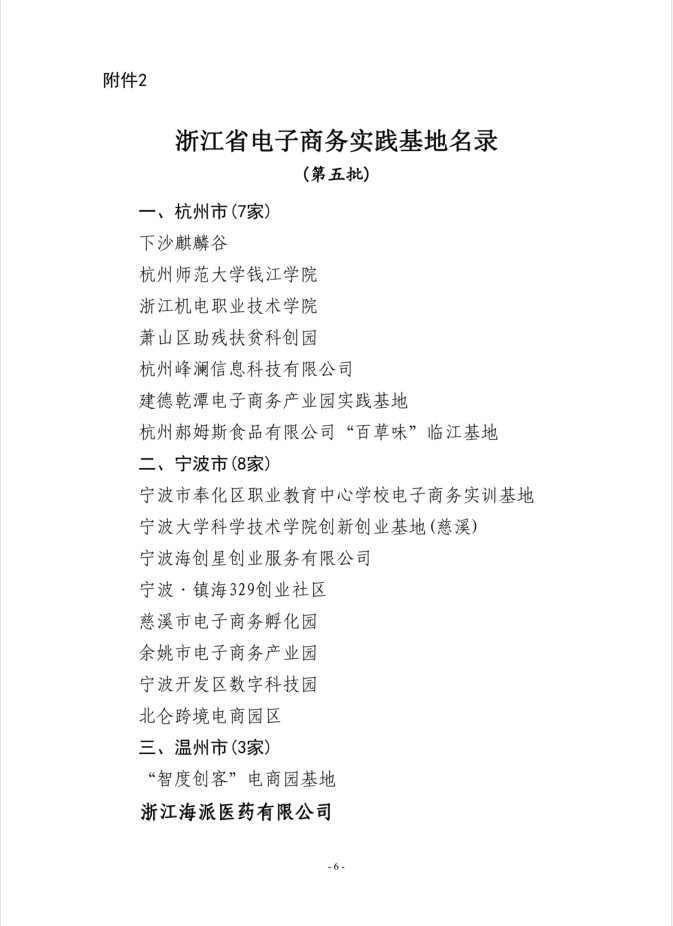 ?喜報(bào)/浙江海派醫(yī)藥有限公司列入《浙江省電子商務(wù)實(shí)踐基地名錄》