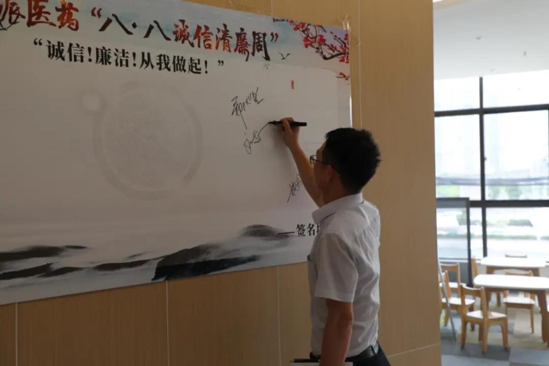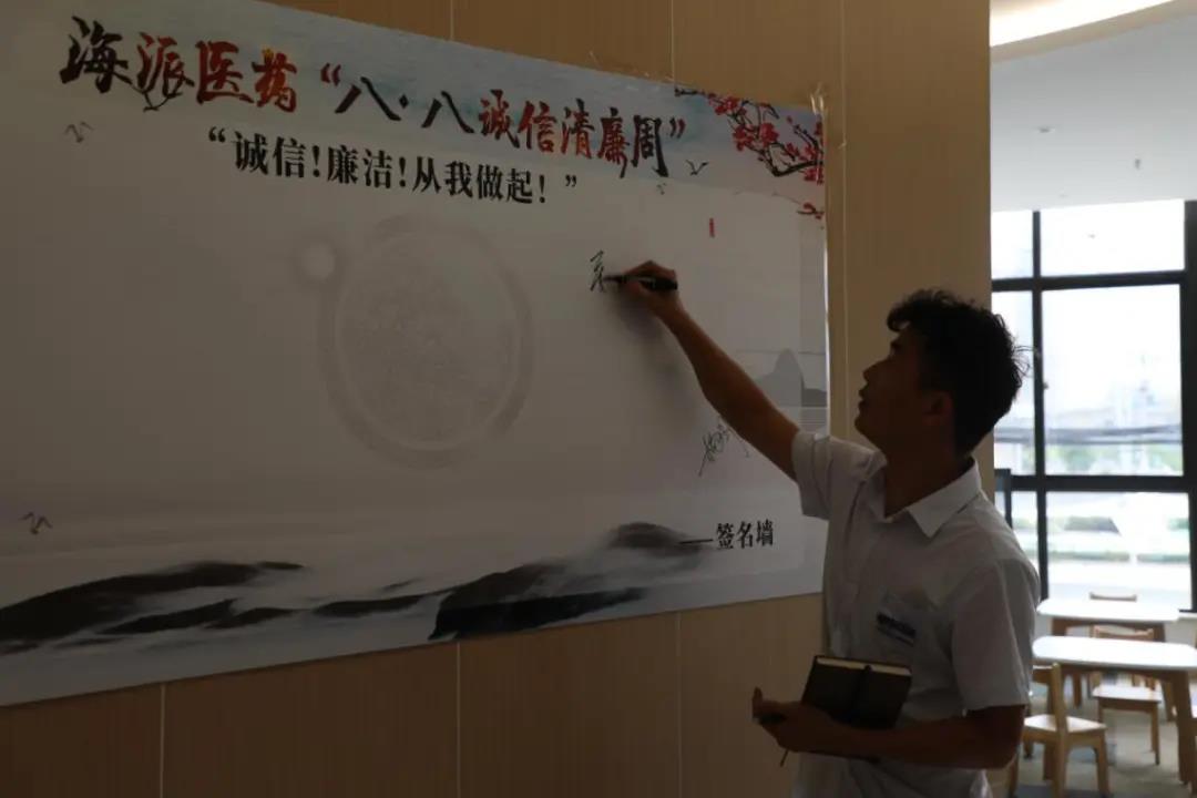 會(huì)議最后,海派醫(yī)藥職工開展重溫入職宣誓儀式,并紛紛在“誠信!廉潔!從我做起!”簽字墻前簽名,莊重地許下對(duì)誠信清廉的承諾。