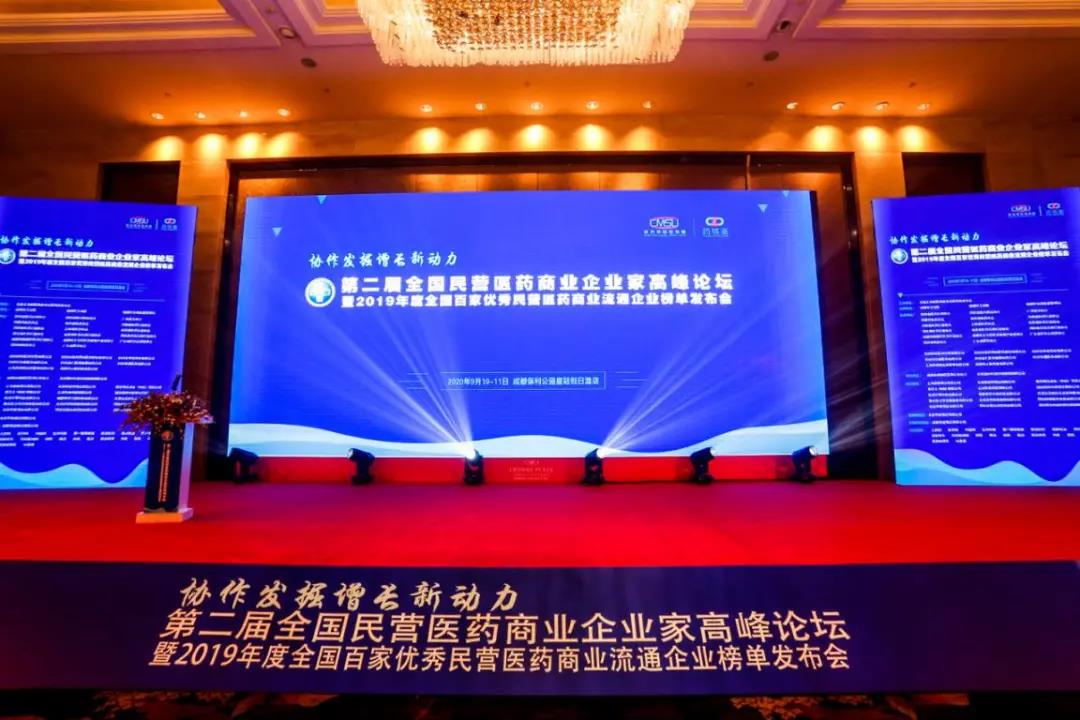 2020年9月11日,中華全國(guó)工商業(yè)聯(lián)合會(huì)醫(yī)藥業(yè)商會(huì)商業(yè)分會(huì)在四川成都隆重舉行“第二屆全國(guó)民營(yíng)醫(yī)藥商業(yè)企業(yè)家高峰論壇暨2019年度全國(guó)百家優(yōu)秀民營(yíng)醫(yī)藥商業(yè)流通企業(yè)榜單發(fā)布會(huì)”。