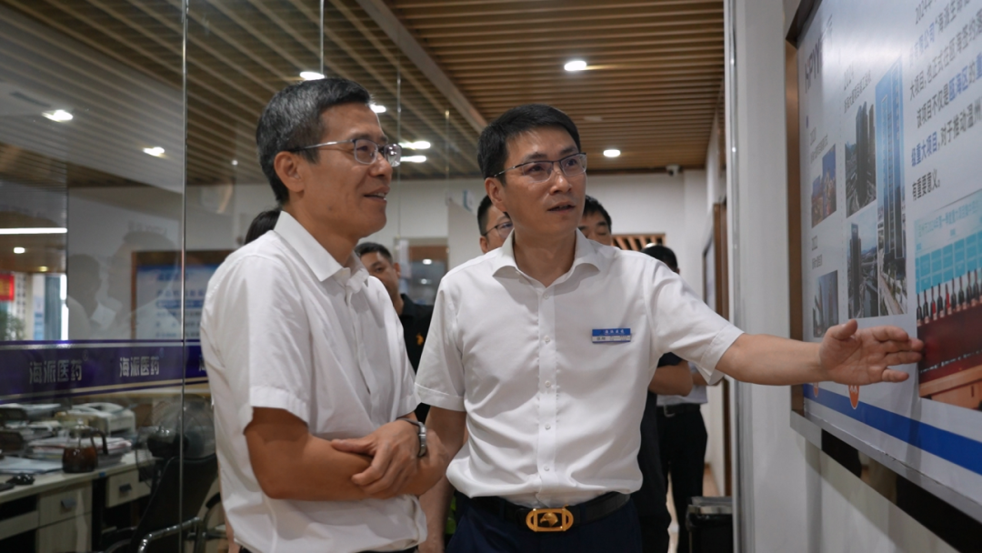 徐海嚴(yán)局長(zhǎng)與海派醫(yī)藥董事長(zhǎng)張翔先生進(jìn)行了親切交談,詳細(xì)了解了企業(yè)的發(fā)展現(xiàn)狀和未來(lái)規(guī)劃,并就海派生命健康科創(chuàng)園項(xiàng)目進(jìn)行了重點(diǎn)介紹和深入探討。
