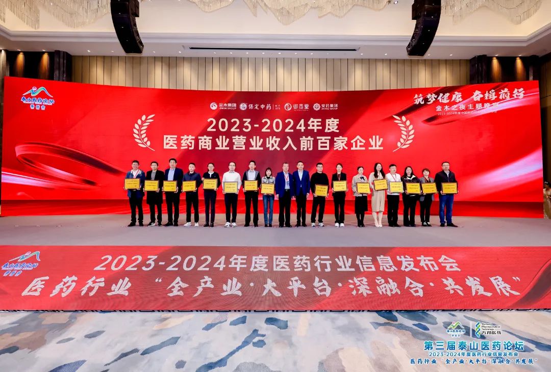 11月4日,“第三屆泰山醫(yī)藥論壇暨 2023 - 2024 年度醫(yī)藥行業(yè)信息發(fā)布會” 在山東省濟南市盛大召開,并發(fā)布了由全國工商聯(lián)醫(yī)藥業(yè)商會主辦、備受業(yè)界矚目的 “2023- 2024年度中國醫(yī)藥行業(yè)最具影響力榜單”。在該榜單中,海派醫(yī)藥再次榮登企業(yè)榜單,蟬聯(lián) “2023年度全國百家優(yōu)秀民營醫(yī)藥商業(yè)流通企業(yè)”稱號。